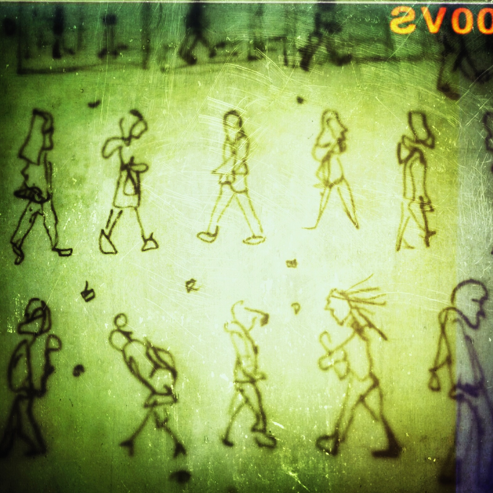 74/365 Various people on Whiteladies Road. Pencil and V-ball. Notebook: as-yet-still-untitled