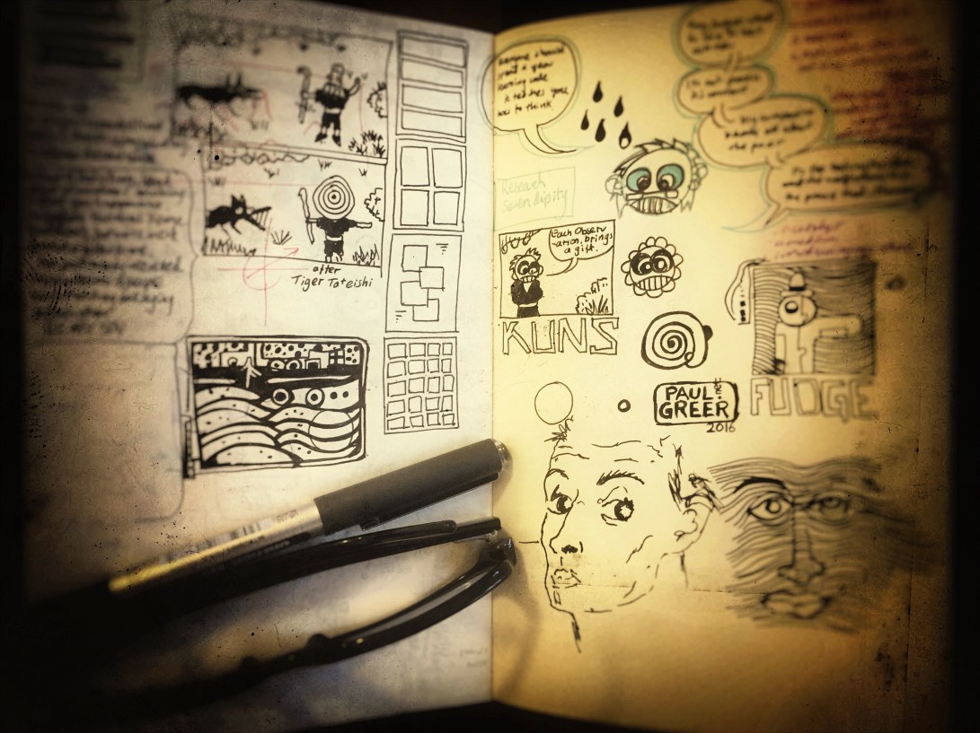 February 12, 2016 at 05:34PM Image | February 13, 2016March 9, 2019 | Paul Greer Doodling on my sick day with Hunterwasser, Shiele and Tiger Tateishi. It’s 17:30 and it’s still light. That’s progress. Notebook: Myrtle. Related