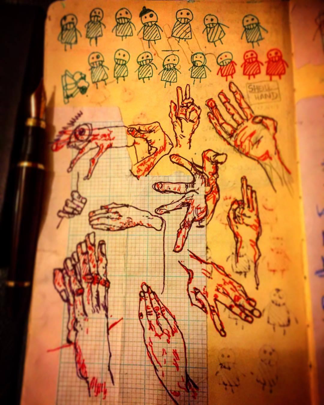 Out of practice so I practice drawing hands. After Shiele. Also some little men. Image | February 22, 2018March 9, 2019 | Paul Greer Related