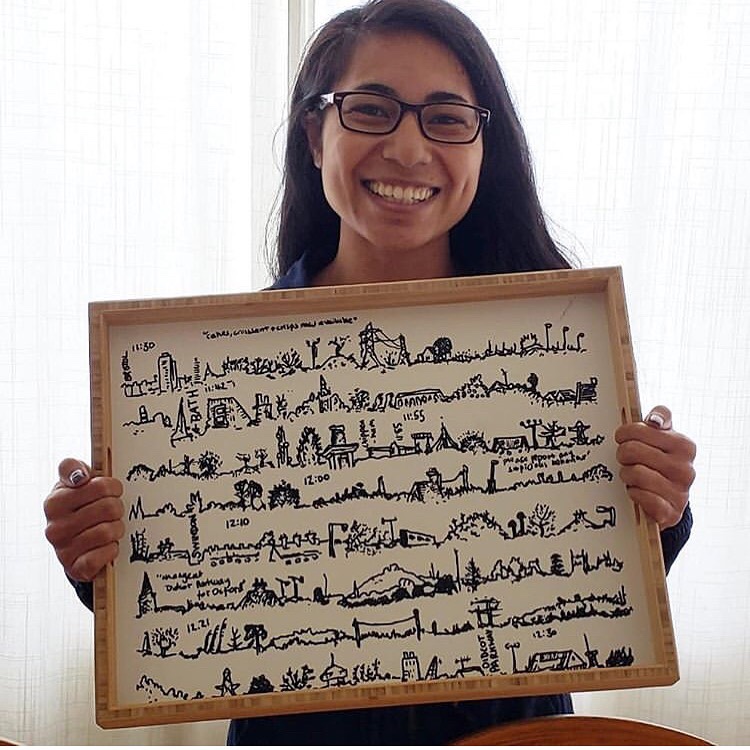 Here is a picture of the excellent @jacquelinedear holding up a serving tray with my drawing “One Hour on the 11:30 from Bristol Temple Meads” she had just received from @society6. How wonderful is that?!