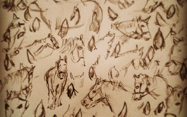 76/365. Horses in motion. With special emphasis on the ears. Pencil. Notebook: Ethel.