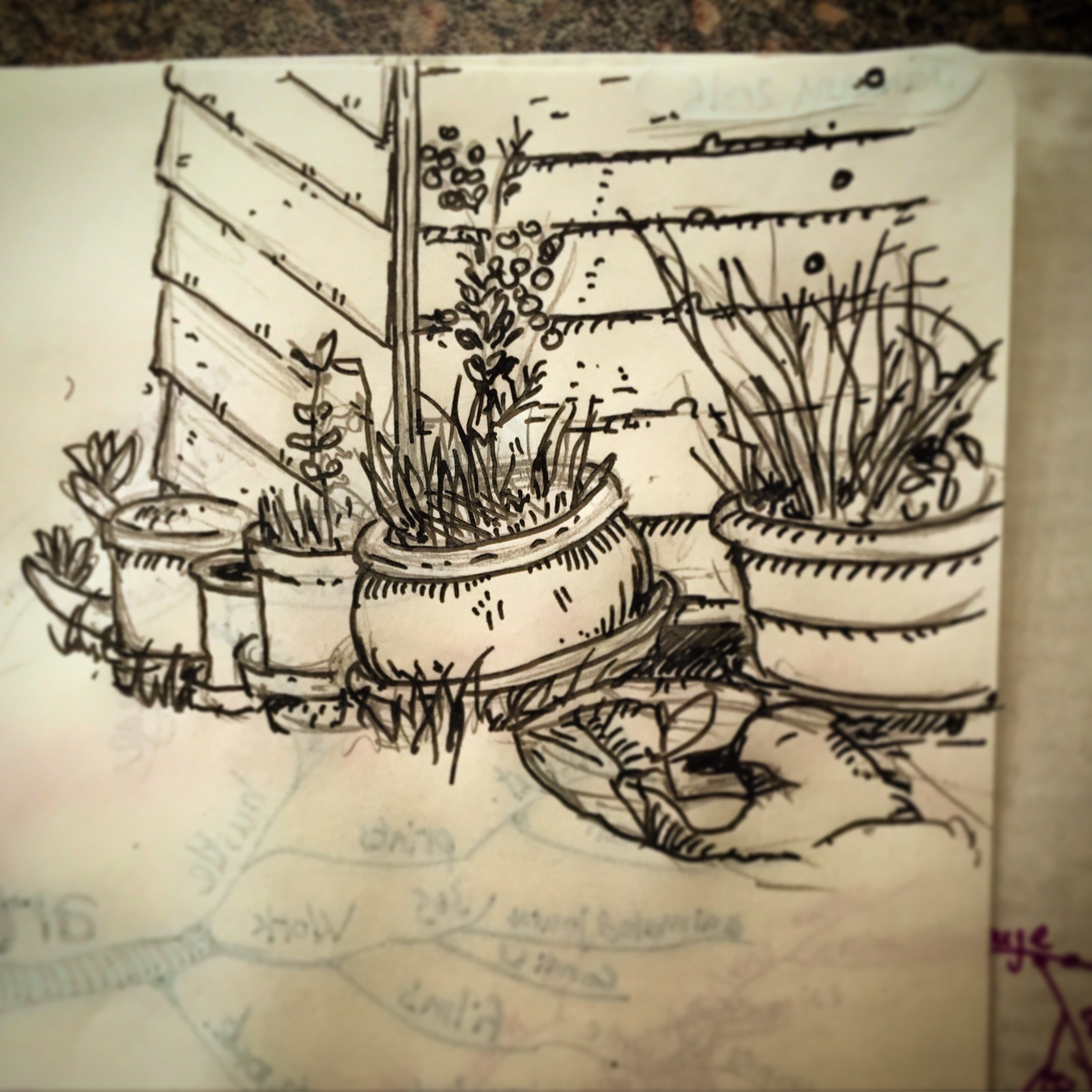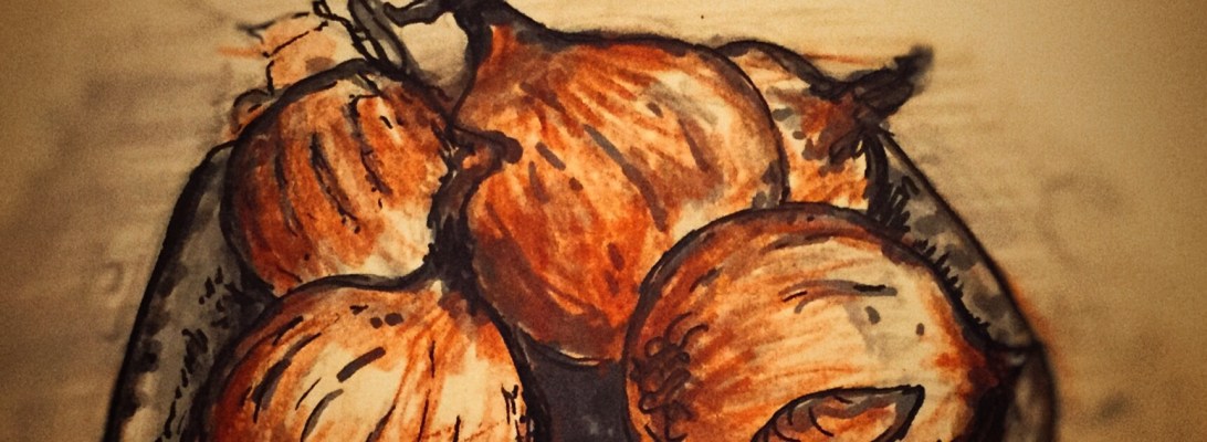 I would like to experiment with materials more but usually they are done on the fly when I just have a pencil and a Uniball in my pocket. The onion picture below I did at home so had various different media available.