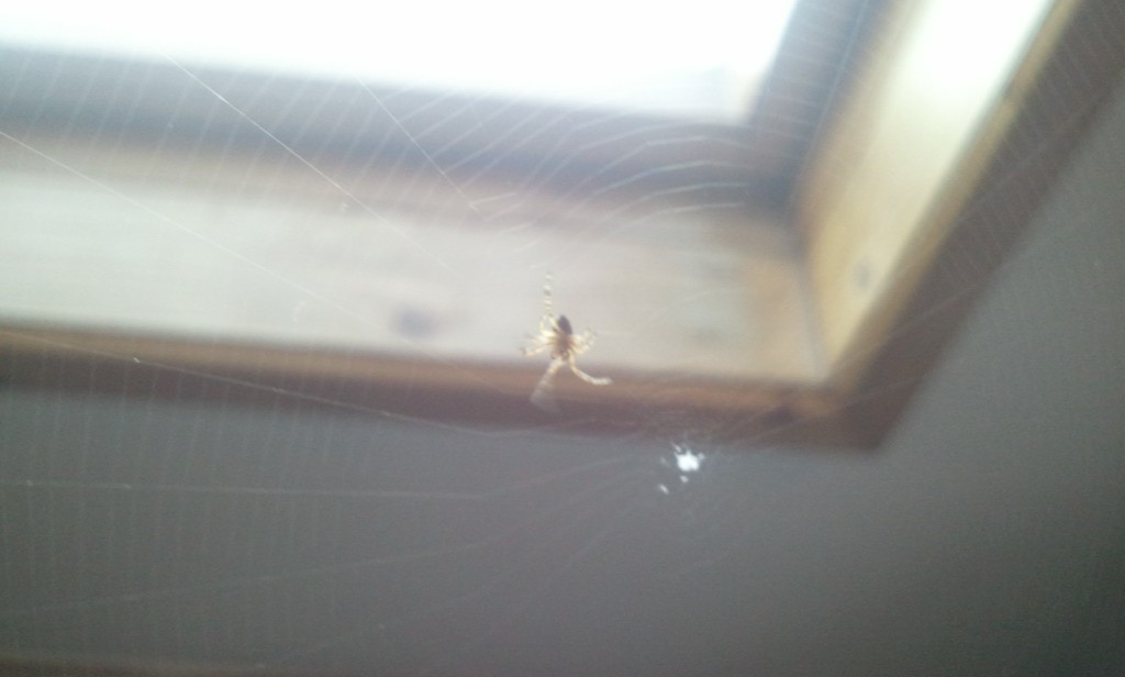 Hereβs a picture of a tiny spider that has build a web across our landing.