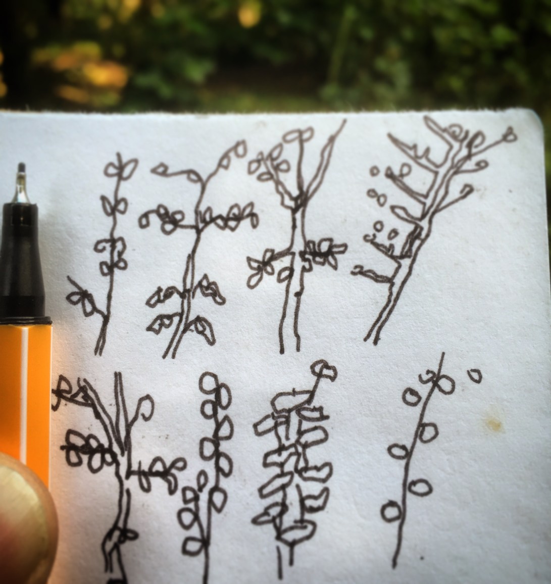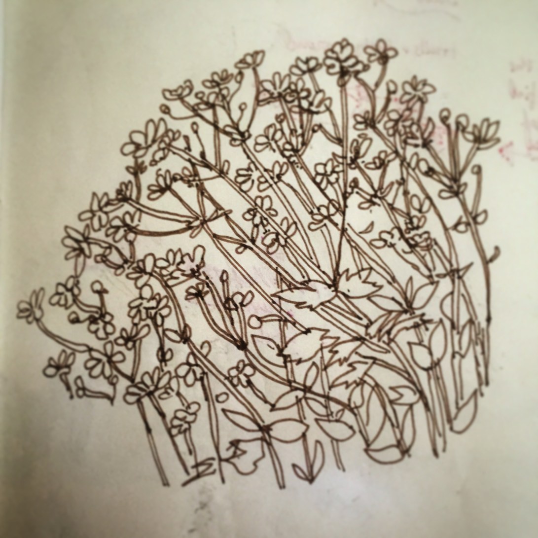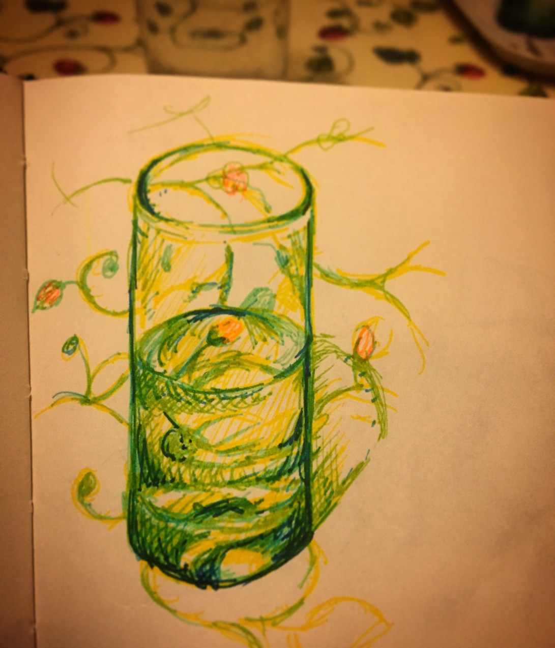 112/365 Half full glass on patterned table cloth. Multi-coloured Stabilo. 16 mins Notebook: Ethel.113/365 Dismaland doodling. Quite good there, it is. Very lucky to get tickets, thanks S. Anniversary treat. A reminder of life before parenthood. Uniball. Notebook: Artemis.114/365 Another lunch break pass at the architectural complexity that is the Vittoria. One more go after this and I think it might be done. Pencil Notebook: Ethel115/365 Saplings in Leigh Woods, drawn on the move whilst discussing the merits of time travel in narrative forms. It was agreed Days of Future Past was a bad example, I cited Philip K Dick’s The Skull as a good one. 5 mins (with distraction) Black Stabilo Notebook: Artemis.