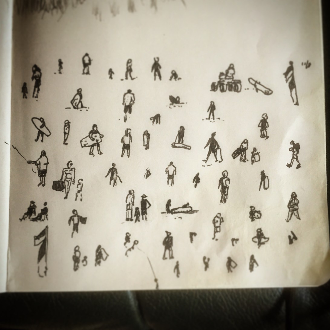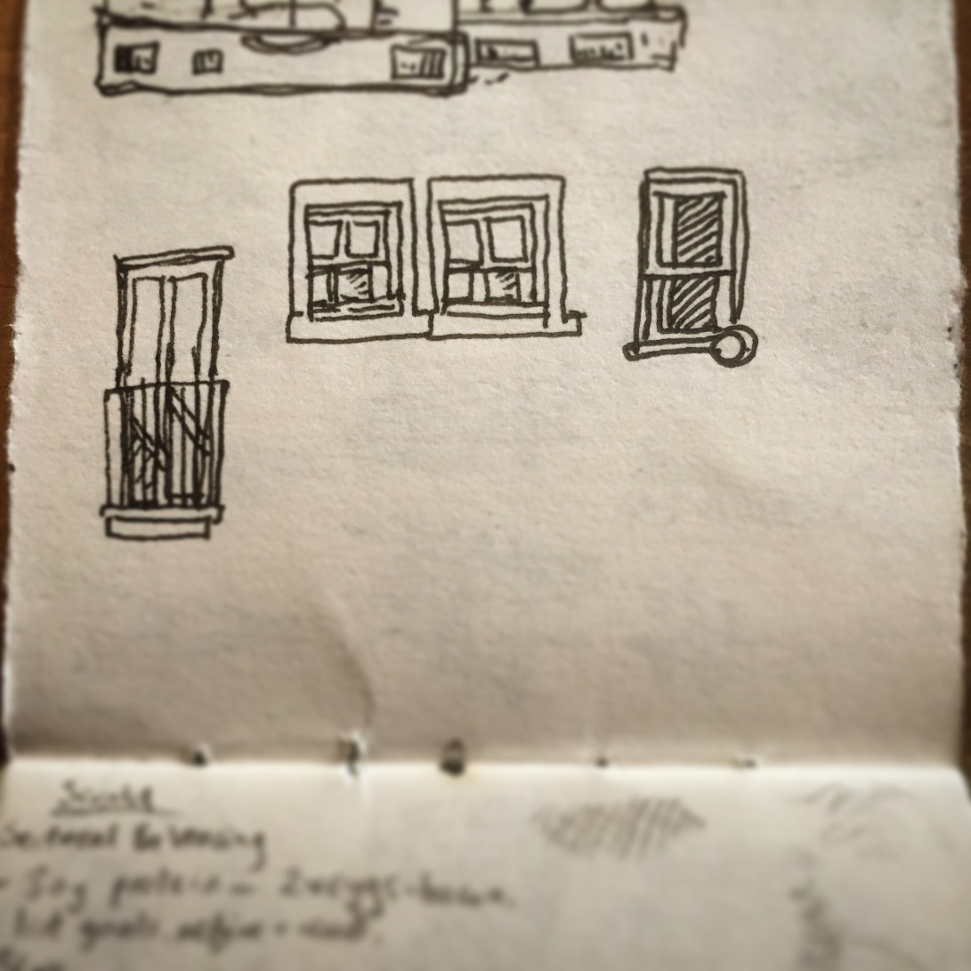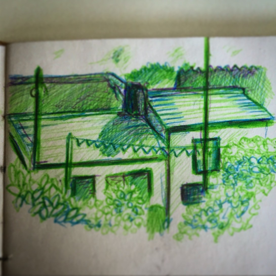 91/355 The hallowed Vittoria on Whiteladies Road. Home to the occasional accidentally lost evening. Currently doing a nice line in sandwiches. A bit rusty and I bit of more than I can chew with the architectural aspects. At some point one realises one should’ve measured stuff. Probably will return to this. 30mins. (Lunch break) Pencil. Notebook: Ethel.92/365 The washing up needed doing and I could only find a biro. 5 mins. Pen. Notebook: Ethel93/365 Fallen slightly behind in uploading these, so prepare for high volume. We just got back from 2 weeks in St. Ives Bay, and although the area has a reputation for art and drawing my main plan for the holiday was to do very little. However drawings did occur. Here’s some windows from the nearby town of Hayle. Straight to V-Ball. 2 mins. Notebook: Artemis.94/365 View of St Ives from the beach across the bay. If I had taken watercolours I could done a sketch of this every hour a not come up with two the same, the light and colour are constantly changing. Straight to V-Ball. 10 mins. Notebook: Ethel.95/365 I spent most of the holiday trying to be without my phone. So when my Youngest completed a rather impressive sand castle complex then asked me to take a photo, I crumbled with regret. The only option was to draw it instead (like they did in the old days). In the face of my obvious disappointment at the result, Youngest deemed it an accurate reflection of his efforts. Pencil. 15 minutes. Notebook: Ethel.96/365 One of the life guard stations on St. Ives Bay beach, partly hidden in the dunes and the grass. They attend from 10-6 to save your life. Blessed are they all. Pencil. 20 mins. Notebook: Ethel97/365 Sitting in the Ice Cream Parlour on the sea front of St. Ives (I wasn’t eating because I’m watching my figure), looking across the bay with Porthminster Beach on the right there. Fond memories of St Ives from many years past when lack of children meant we could visit out of season, and walk the empty beautiful streets at leisure. Still good though. Straight to V-Ball. 5 minutes. Notebook: Artemis98/365 Various people on the beach on St Ives Bay. Including surfers, families, lifeguards, hikers, dogs, flags, kites. Most of human life passing the time. Straight to V-Ball. 20 mins. Notebook: Ethel.99/365 Super fast rooftop study. Waiting for the shopping expedition to return. Hayle. Pencil. 4 mins. Notebook: Artemis100/365 That’s number ONE HUNDREDπππππππ Houses and shop fronts through bushes. Hayle. That’s bunting not Tibetan Prayer Flags #notbristol. Multicoloured biro. 15 mins Notebook: Ethel NUMBER ONE HUNDRED, I said. Dooosh!101/365 Godrevy Lighthouse viewed from St Ives Bay Beach. The last one for today you’ll be relieved to hear. Again given a watercolour set and the inclination I could’ve made a sketch every hour and ended the fortnight with a hundred and a half of pictures all very different in colour and mood such was the transient nature of the light there. Pencil. 25 mins Notebook: Ethel