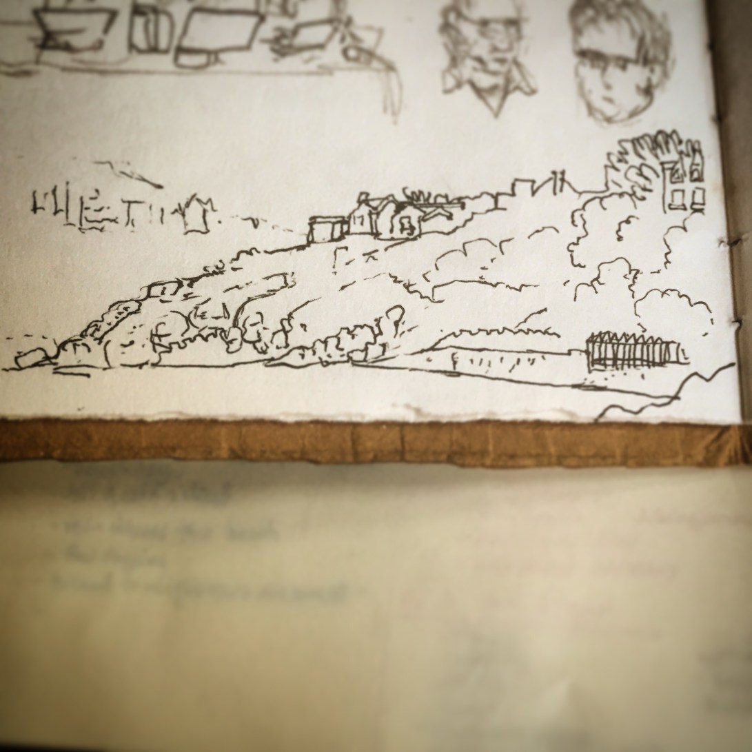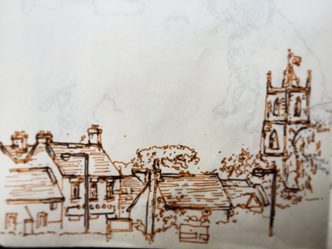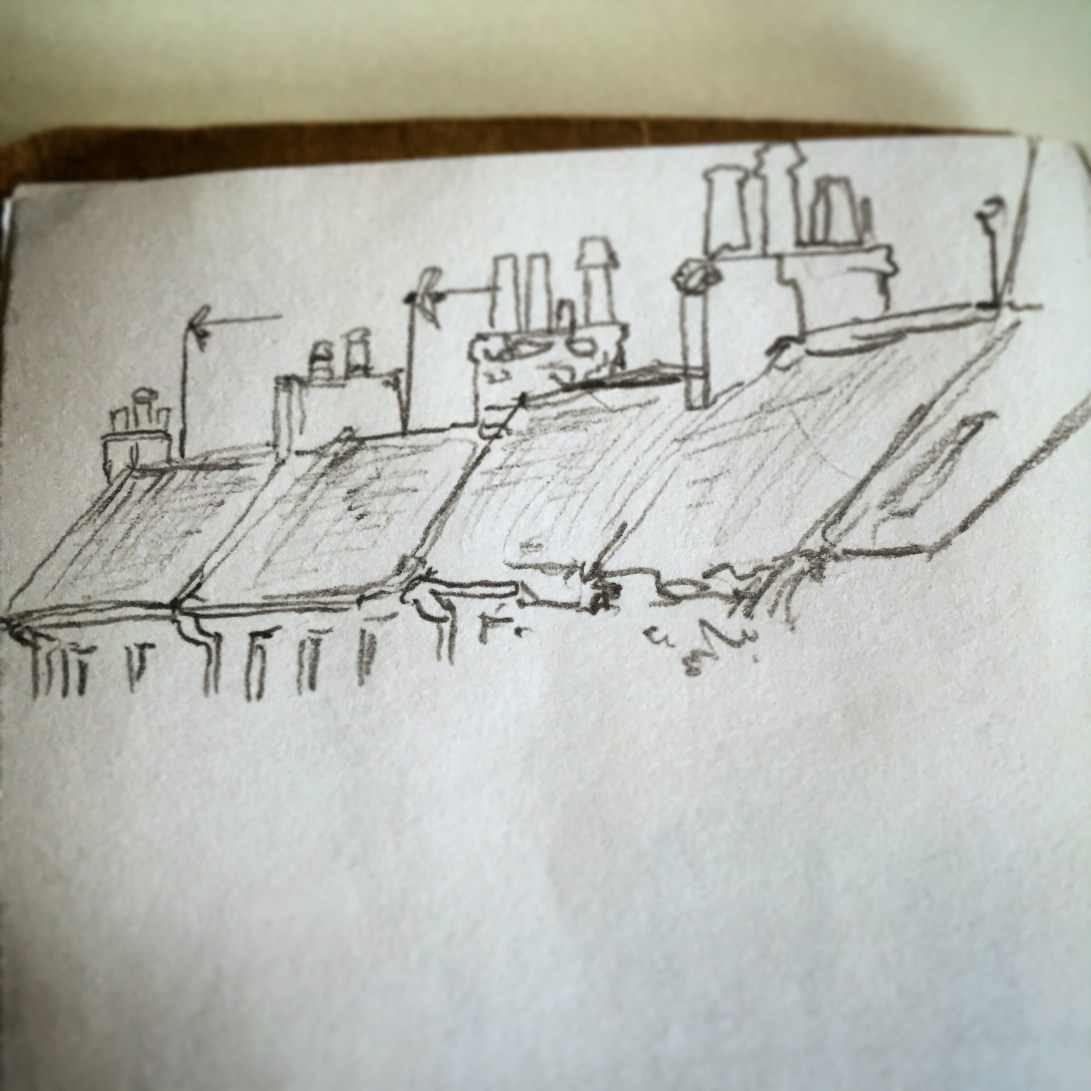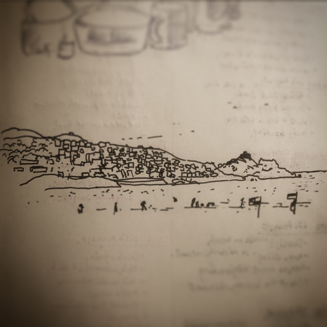 91/355 The hallowed Vittoria on Whiteladies Road. Home to the occasional accidentally lost evening. Currently doing a nice line in sandwiches. A bit rusty and I bit of more than I can chew with the architectural aspects. At some point one realises one should’ve measured stuff. Probably will return to this. 30mins. (Lunch break) Pencil. Notebook: Ethel.92/365 The washing up needed doing and I could only find a biro. 5 mins. Pen. Notebook: Ethel93/365 Fallen slightly behind in uploading these, so prepare for high volume. We just got back from 2 weeks in St. Ives Bay, and although the area has a reputation for art and drawing my main plan for the holiday was to do very little. However drawings did occur. Here’s some windows from the nearby town of Hayle. Straight to V-Ball. 2 mins. Notebook: Artemis.94/365 View of St Ives from the beach across the bay. If I had taken watercolours I could done a sketch of this every hour a not come up with two the same, the light and colour are constantly changing. Straight to V-Ball. 10 mins. Notebook: Ethel.95/365 I spent most of the holiday trying to be without my phone. So when my Youngest completed a rather impressive sand castle complex then asked me to take a photo, I crumbled with regret. The only option was to draw it instead (like they did in the old days). In the face of my obvious disappointment at the result, Youngest deemed it an accurate reflection of his efforts. Pencil. 15 minutes. Notebook: Ethel.96/365 One of the life guard stations on St. Ives Bay beach, partly hidden in the dunes and the grass. They attend from 10-6 to save your life. Blessed are they all. Pencil. 20 mins. Notebook: Ethel97/365 Sitting in the Ice Cream Parlour on the sea front of St. Ives (I wasn’t eating because I’m watching my figure), looking across the bay with Porthminster Beach on the right there. Fond memories of St Ives from many years past when lack of children meant we could visit out of season, and walk the empty beautiful streets at leisure. Still good though. Straight to V-Ball. 5 minutes. Notebook: Artemis98/365 Various people on the beach on St Ives Bay. Including surfers, families, lifeguards, hikers, dogs, flags, kites. Most of human life passing the time. Straight to V-Ball. 20 mins. Notebook: Ethel.99/365 Super fast rooftop study. Waiting for the shopping expedition to return. Hayle. Pencil. 4 mins. Notebook: Artemis100/365 That’s number ONE HUNDREDπππππππ Houses and shop fronts through bushes. Hayle. That’s bunting not Tibetan Prayer Flags #notbristol. Multicoloured biro. 15 mins Notebook: Ethel NUMBER ONE HUNDRED, I said. Dooosh!101/365 Godrevy Lighthouse viewed from St Ives Bay Beach. The last one for today you’ll be relieved to hear. Again given a watercolour set and the inclination I could’ve made a sketch every hour and ended the fortnight with a hundred and a half of pictures all very different in colour and mood such was the transient nature of the light there. Pencil. 25 mins Notebook: Ethel