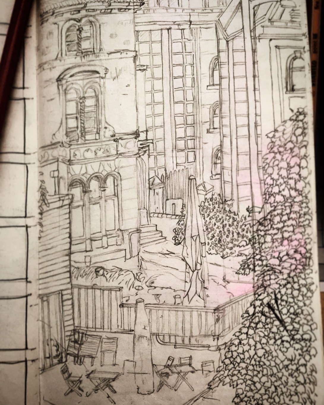 116/365 Busy old week, just managed to fit in a big finish for the blessed Vittoria. I think the notebook paper has taken as much as it can with all the scratching away. Omitted the benches and the chalk board but they were always in different places each sitting. Pencil. Notebook: Ethel.